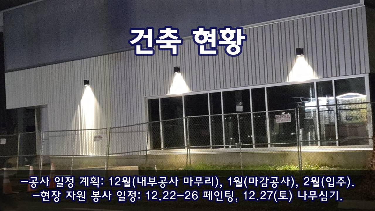 영혼구원하여 제자삼는 교회 최근 교회 소식 Bridge Fellowship건축현황부서별 봉사자 모집삶공부 수료성탄 주일 통합예배 목회 칼럼 "평세 마치고 휴가 떠나며""미니멀리스트 삶 살기""새벽기도 자율기도"신축 현장 작업 소식 모음"나누는 사람이 복이 있습니다." 교회 사진 Recent Church Events신학서적 연구회서북부 지방회 가족수양회교도소 채플린 Dr. Daniel Cho목사 집회VIP 초청 야외예배