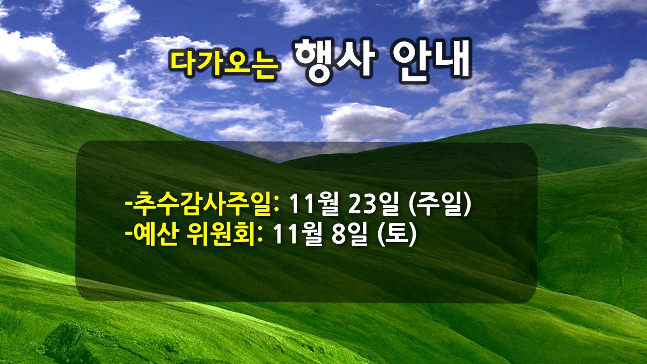 영혼구원하여 제자삼는 교회 최근 교회 소식 2025년11월16일 주보건축 작업 봉사건축현황다가오는 행사외부행사 일정 목회 칼럼 "평세 마치고 휴가 떠나며""미니멀리스트 삶 살기""새벽기도 자율기도"신축 현장 작업 소식 모음"나누는 사람이 복이 있습니다." 교회 사진 Recent Church Events신학서적 연구회서북부 지방회 가족수양회교도소 채플린 Dr. Daniel Cho목사 집회VIP 초청 야외예배